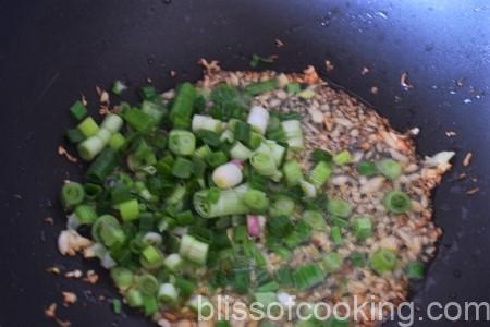 - Add spring onions and sauté for till it starts to shrink.