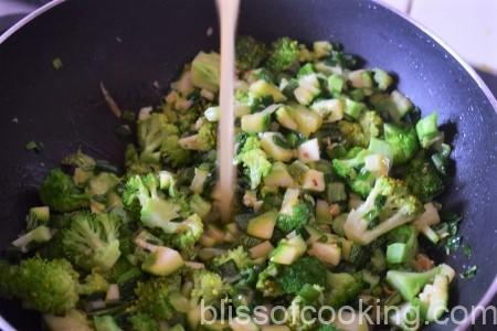 - Add broccoli and sauté for 2 minutes.
