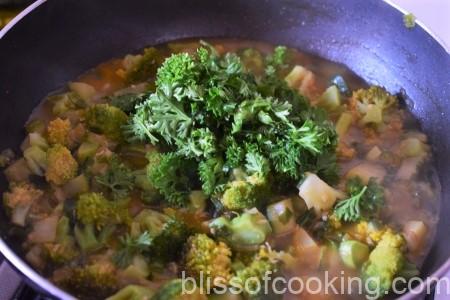 - Add the spinach/ parsley and cook till wilted.