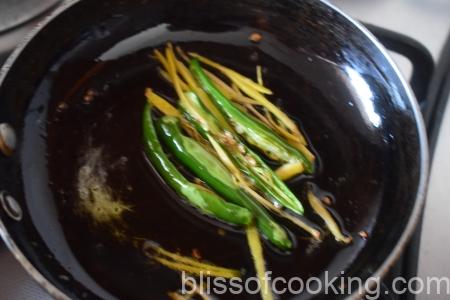 - Heat ghee, add chilli, ginger and pour on the chole.