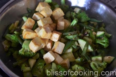 - Add the tofu and toss for a minute.