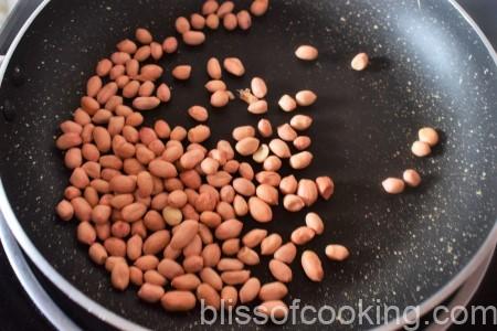 - Roast the peanuts, remove the skin and grind to a coarse powder. Add to the sago powder.