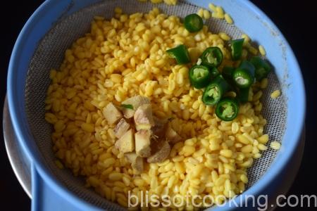 1/2 cup moong dal soaked (moong beans that have been skinned and split)