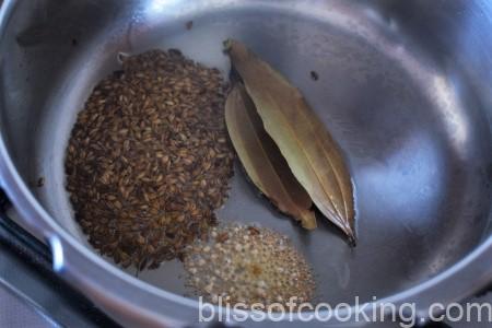 - Add bay leaves and asafoetida.