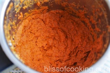 - Now add onions and the roasted masala’s to a grinder jar, add little water and make a fine paste.