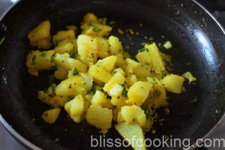 - For the batata bhaji, you can cook the boiled potato with salt, or haldi or just use boiled chopped potatoes.