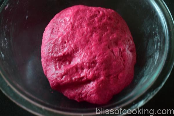 - Similarly, make the beetroot dough using the beetroot puree.