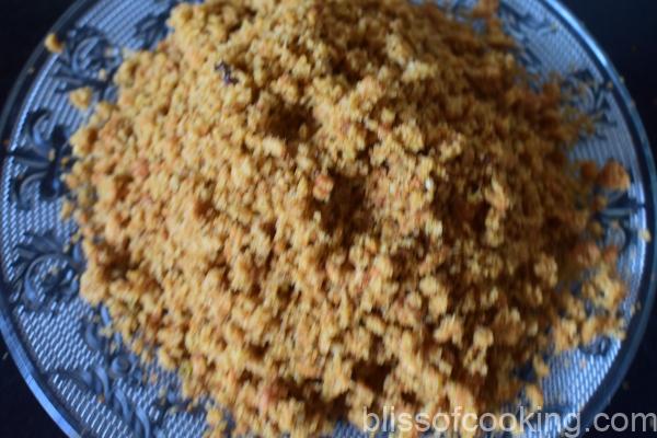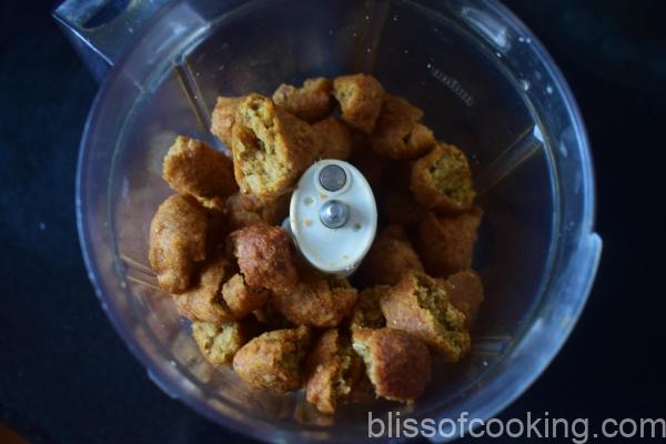 - Now break all the pakoras by hand and grind coarsely in a grinder.