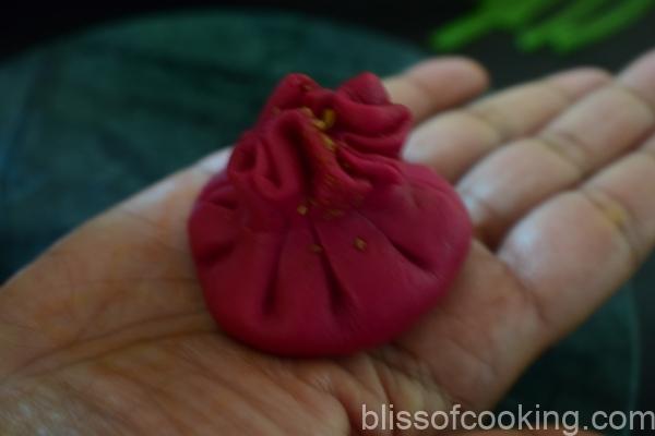 - Similarly, make the beetroot potlies or money bags.