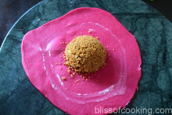 - Similarly, make the beetroot dough using the beetroot puree.