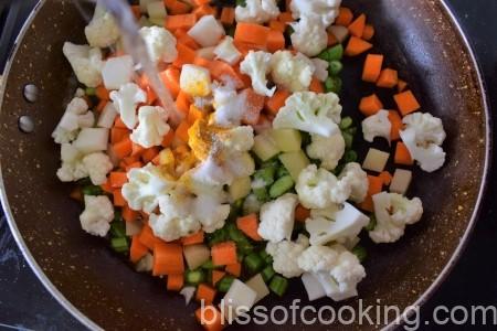 • Add in the vegetables and salt (to taste). Mix it.
