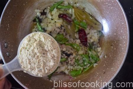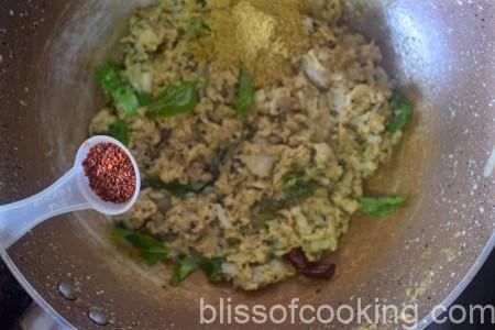 • Add the coriander powder, chilli powder and stir it for a few seconds.
