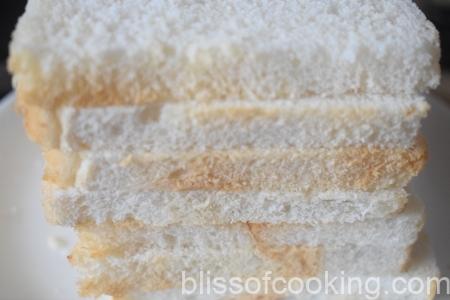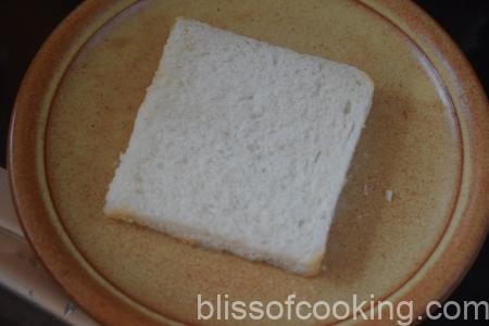 • Soak one bread slice at a time in the water; press the bread between your palms so that the excess water is drained out.