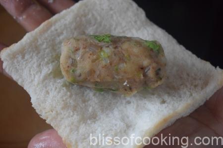 • Make all the rolls similarly and refrigerate for 30 minutes to get crisp bread rolls. If you are frying then also it will absorb less oil.