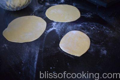 - Roll with the help of plain flour into 6” thin round.