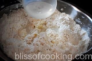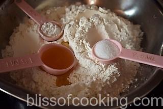 - Mix flour, salt, baking powder and oil in a bowl.