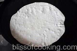 - Heat a skillet and roast tortilla lightly on both the sides.
