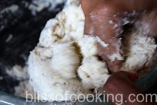 - Add the rest of oil and knead for 5 minutes till the dough is bouncy. If you press the dough with your finger it should spring back.