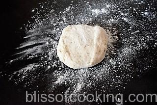 - Spread the dough and fold it from both the sides to form a ball again. Repeat this step twice.