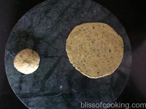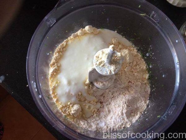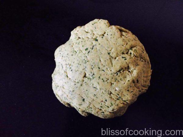 • Transfer all the ingredients except oil in a food processor and make a dough by adding just enough water. The dough should not be as soft as for roti.