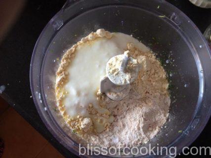 - Transfer all the ingredients except ghee in a food processor and make a dough by adding enough water to made a soft dough.