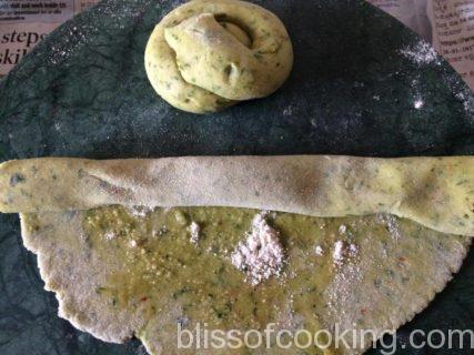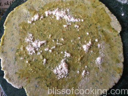 - Apply 1/3 teaspoon of ghee and sprinkle a big pinch of flour.