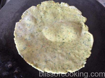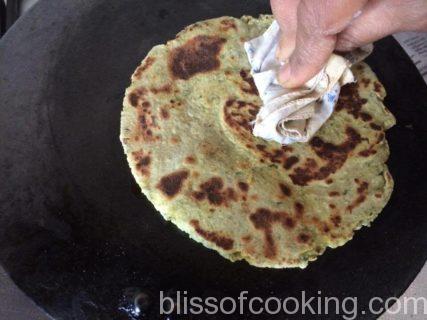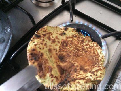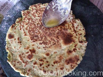 - Take off the griddle and apply ¼ teaspoon ghee on the side which was roasted first.