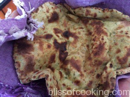 Methi Missi Roti is Indian flat bread, popular in Rajasthan, Punjab and many other north Indian states. The dough for this roti is made with whole wheat flour (atta), gram flour(besan) and fresh methi (fenugreek leaves). Missi Roti is made thick and roasted on low flame to get perfect crisp roti.