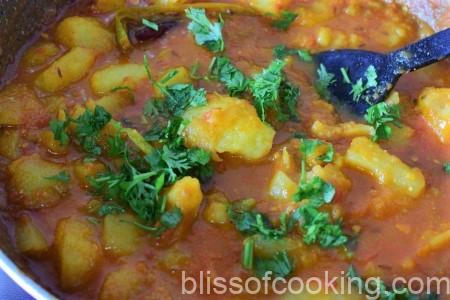 • Switch off the heat and add half of chopped coriander and stir.