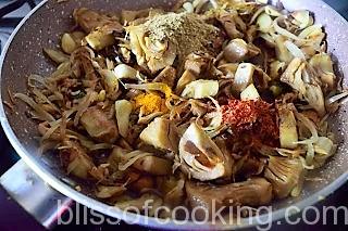 • Heat oil in a pan; add jeera, hing, and the kathal and saute on medium heat for 5 minutes.