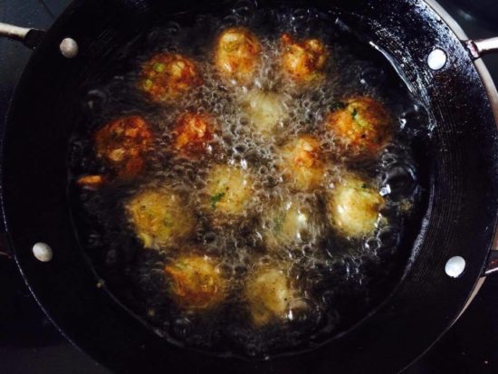 • Make lemon size balls and fry in medium hot oil.