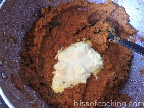 • Also add the cashew paste. Stir till well mixed.