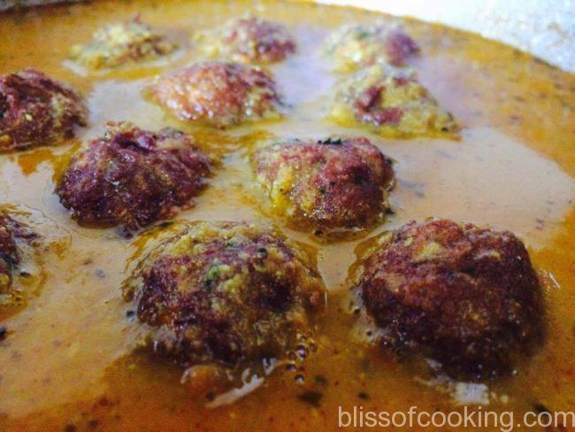 • Now add the koftas. Cover and cook for 5 more minutes.