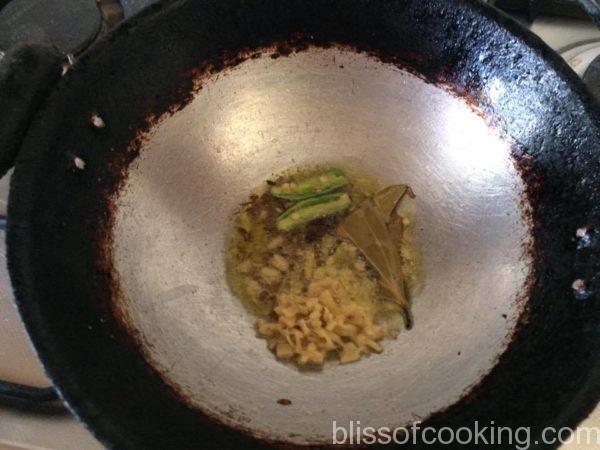- Heat ghee in a small pan; add jeera, bay leaf.