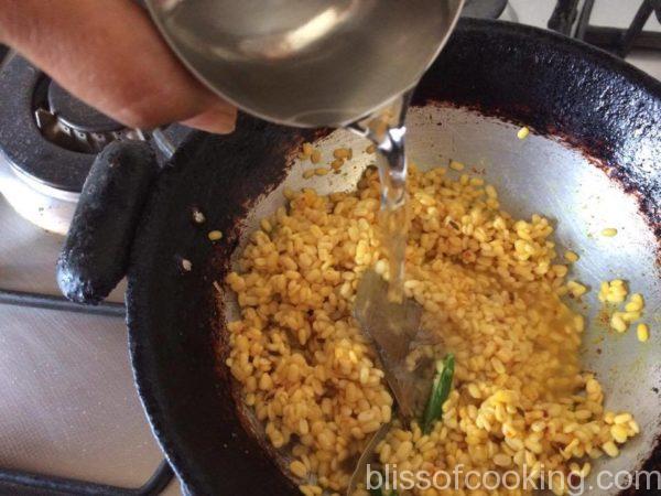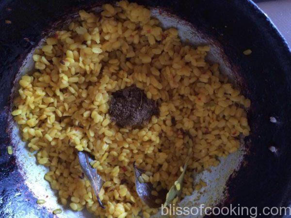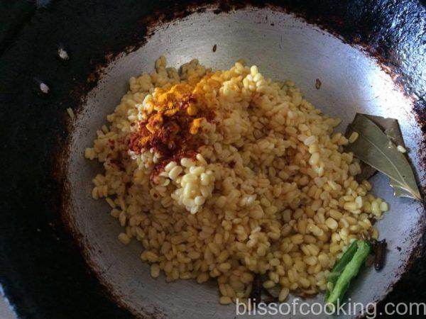 - Now add the dal, turmeric, chilli powder and saute for 2 minutes.