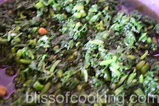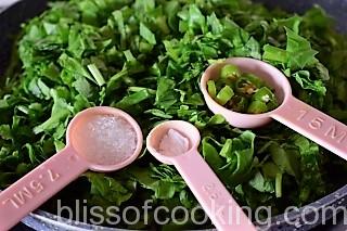 Note: Sugar and soda will help to retain the green colour of the spinach. The roasted spice mix will make a difference in this dish so; don’t substitute it with the normal garam masala.
