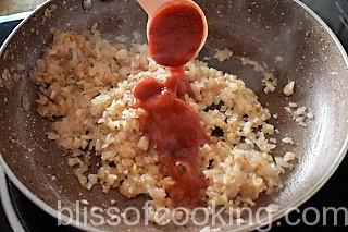 - Add tomato puree and cook till oil starts to separate.