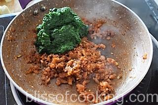 - Stir in the spinach pure and cook till it starts to bubble.