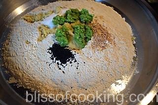 - Transfer in a big bowl; add all the dry ingredients, 2 teaspoon oil and both the paste.