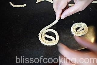 - Working from the centre to the outside make the Chakli.