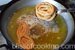 Note: As the aata is steamed it requires very little oil so try frying 1 Chakli and check. If it breaks add 1 table of aata and make the rest.