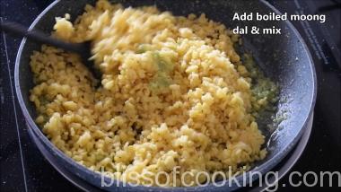 - Boil the moong dal with just enough water so that the dal is cooked but not mushy . Strain the excess liquid if any.