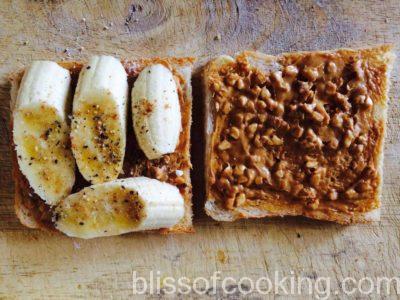Peanut Butter and Banana Sandwich is a sweet, warm and filling breakfast dish. This sandwich is pan fried with cream or butter to get a golden brown crunchy crust. This sandwich is always a hit with kids.