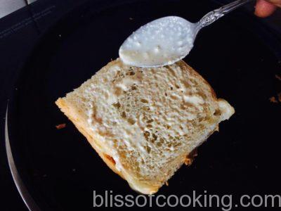 - Place the sandwich on a heated pan, apply half of the cream and turn immediately to the other side.