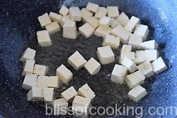 - Heat 2 tablespoon oil in a nonstick wok. Fry the tofu very lightly and keep aside.