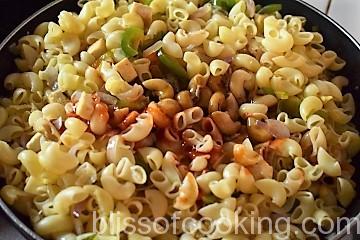 Chinese Tofu Macaroni is an easy to make dish which never disappoints me. As you can guess this is fusion cooking. I have been a big fan of Chinese food since my childhood days. Tofu has a low calorie count and relatively large amounts of protein. It is also high in iron.