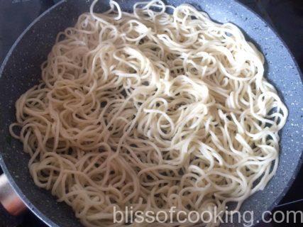 - Bring a pot of water to a boil, add salt and cook the noodles .Drain, and rinse under cold water.