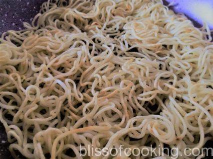- Pour over the pan fried noddles.