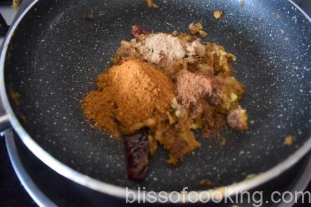 - Add chana masala powder, mango powder, jeera powder and saute for few seconds.