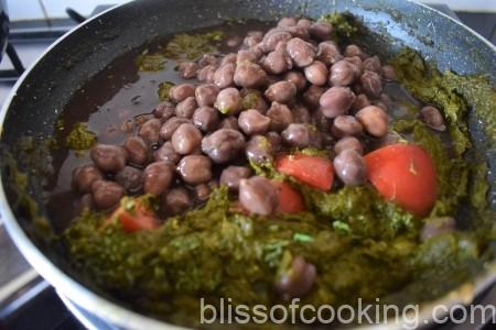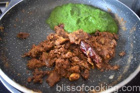 - Add spinach paste, saute for 2 to 3 minutes till well combined.